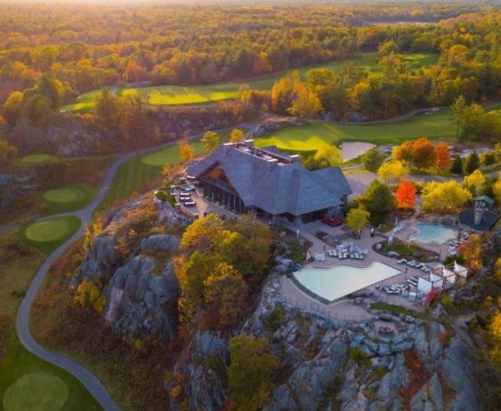 Muskoka Bay Resort has a 17,000 sq. ft. clifftop clubhouse which is semi-private with a fitness studio, entertainment lounge and dining room. And the resort also has an on-site restaurant, Cliffside Bar & Grill, which is the perfect place to grab a bite to eat before or after you play.